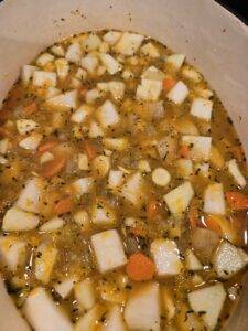 - diced potatoes, diced apple, diced rutabaga, sliced parsnips