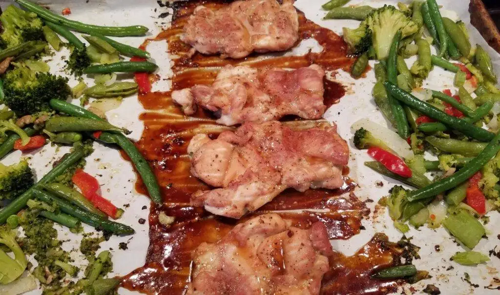 Teriyaki Chicken Thighs and Roasted Frozen Vegetables