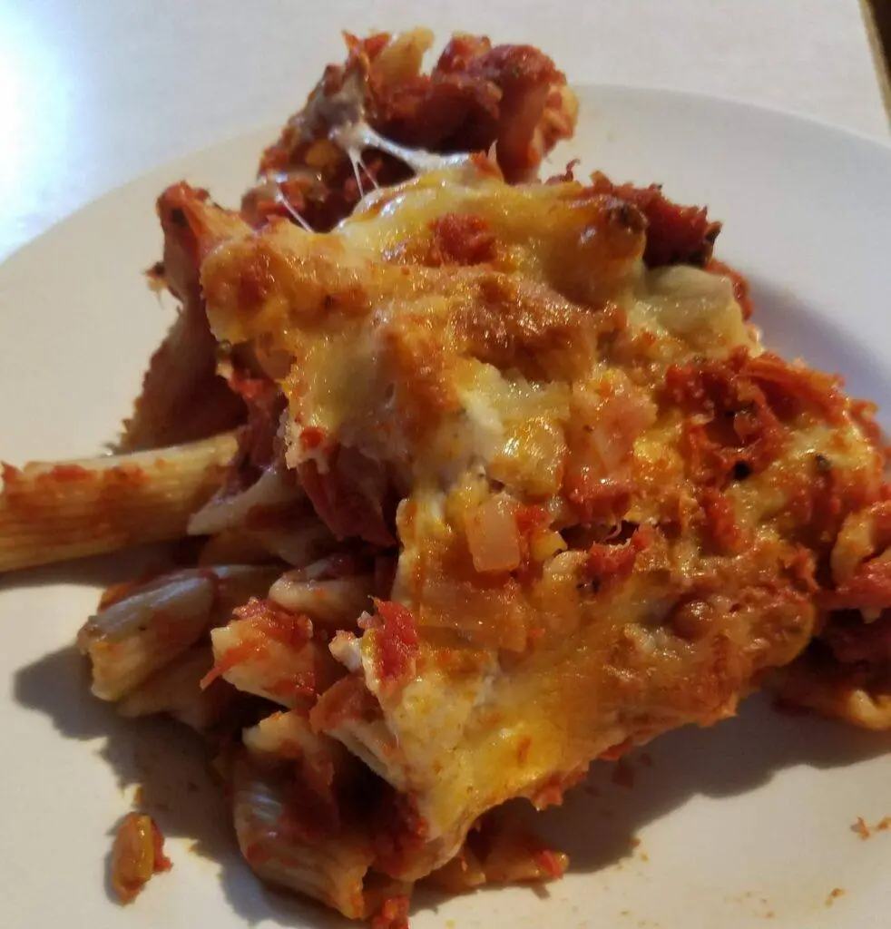 Cheese Ziti is very simple with only two cheeses: cheddar and grated parmesan. It is best described as penne macaroni and cheese.
