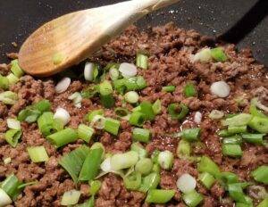 - Add garlic and cook for additional 3 – 4 minutes or until the beef is fully cooked. Drain if necessary.