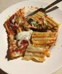 - If I am using medium shells then I forgo the stuffing process and do 1 layer of sauce, 1/2 the noodles, all of the filling, the rest of the noodles and top with the remaining sauce.
